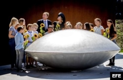 Los asistentes llevaban girasoles para recordar a las víctimas. Sobre un campo ucraniano de girasoles cayeron aquel 17 de julio, los restos de la nave y de las victimas del disparo. Entre los árboles con los nombres de los asesinados, huertos de girasol.